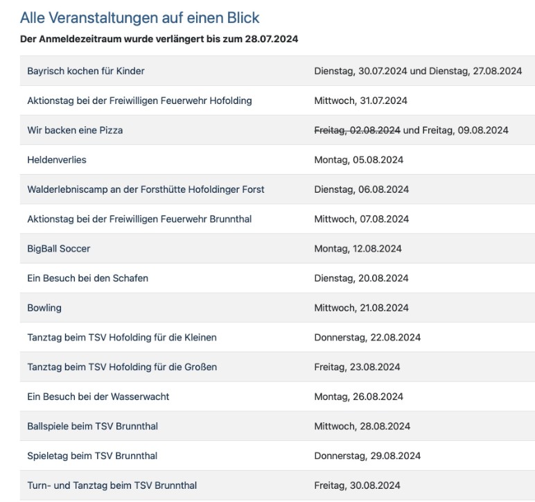 hier findet Ihr das Sommerferienprogramm 2024 der Gemeinde Brunnthal, das wieder ein breit gefächertes Angebot mit vielen interessanten Aktivitäten bietet.
